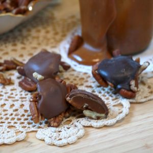 I hesitate to even describe these puppies… uh turtles. What if there’s a run on pecans? What if I, your dear devoted candy describer, could no longer consume these lovely little morsels of goodness. What then? The angel on my shoulder says that I can’t keep all this goodness to myself so I shall carry on with this description and hope that only a select few of you actually order them so I can keep feeding my addiction. We take the highest quality, largest pecans we can find, top them with our medium soft caramel and drizzle a good dose of milk or dark chocolate (I recommend dark) on the top. It’s already a best seller so maybe don’t tell your friends about them… 🙂