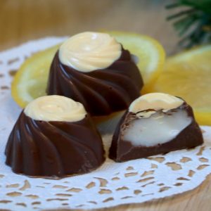 Lemon is God’s hidden gift to anyone who eats food. It takes a normally bland dish and makes it sparkle. Sparkly is a good way to describe these juicy little chocolates. One bite and we think you’ll agree. The creamy center is made with fresh-squeezed lemons with an intoxicating shell of chocolaty goodness. Dream of or celebrate summer with these sparkly morsels of goodness. Hit that Add to Basket button now.